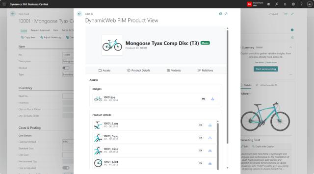 Fra Business Central-varekortet får du tilgang til en PIM-visning med utvidede produktdetaljer, relaterte varer og digitale ressurser som ellers ikke er tilgjengelige i Business Central.